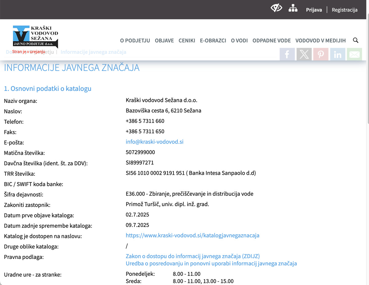 Nova spletna stran ustreza zakonskim zahtevam, ki smo jih morali upoštevati ob vzpostavljanju e-stika z občani. Vse te zahteve smo združili z željo ponuditi nove storitve na spletni strani, tako da nova spletna stran vsebuje katalog informacij javnega značaja, splošne pogoje uporabe, informacije o avtorskih pravicah, pravilnik o piškotkih, vsebino vezano na varstvo osebnih podatkov, skladnost obračunavanja taks z zakonom o upravnih taksah, oddajo vlog skladno z določili elektronskega poslovanja...